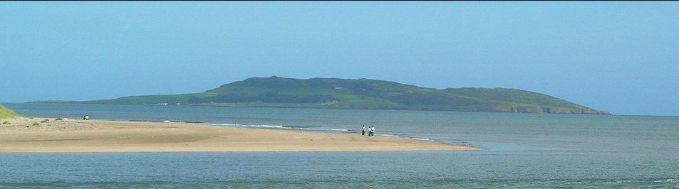 The eroding beach to the south of the harbour has revealed a selection of flakes, flints and flint cores that appear to date from the early Mesolithic period, perhaps as far back as B.C. 7,000 . On the high part of the island in the area known as the Eagle's Nest excavations have yielded quantities of worked porphyry axes, blades, scrapers, etc. and evidence that a 'factory' for fashioning these implements existed here in Neolithic times. Indeed it is the only Neolithic stone axe quarry in the British Isles with evidence for all stages production, from quarrying to final polishing. When the harbour was being improved in the 1920's some remains were discovered surrounded by silver sand and which were thought to date to the 1st century A.D.. The nature of artefacts found here also suggested Romano British trading. The raised beach to the north of the harbour has been suffering from erosion in recent times and in 1995 six male burials were revealed followed by a further seven skeletons in 2002. All are thought to date from around 1500 A.D. There is clear surface evidence of a substantial promontory or garden fort on Scotch Point and another nearby with a barrow cemetery outside. Sunk Island, which is pretty well inaccessible nowadays, appears to have walls on top on two sides and on The Nose there is evidence also of an ancient walled enclosure.